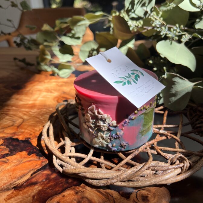 ASOA ~アソア~ 熊本阿蘇の緑豊かな空間で、阿蘇の花や木々を使い、自然の風景をイメージした《キャンドル・アロマサシェ》を製作してます。季節の花をはじめ、自然素材をあしらった世界に一つだけのアイテムは、インテリアとしてはもちろん、大切な人へのギフトとしてもおすすめです。みなさまの心に灯りをともし、心地よい風を感じていただけたら嬉しいです。 ASOA