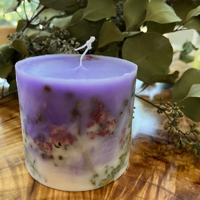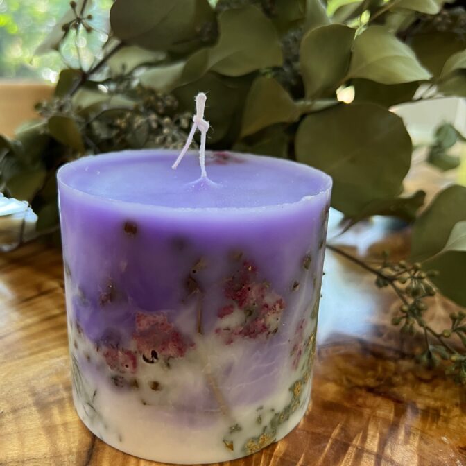 金箔を散りばめゴージャスなキャンドルに仕上げました。